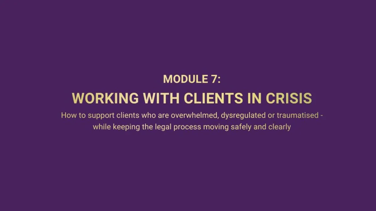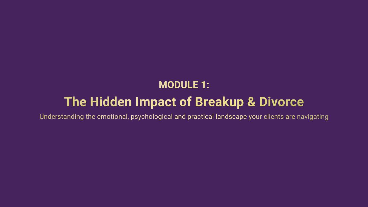 This module explores the emotional and psychological impact of separation and why client behaviour often changes dramatically during divorce.