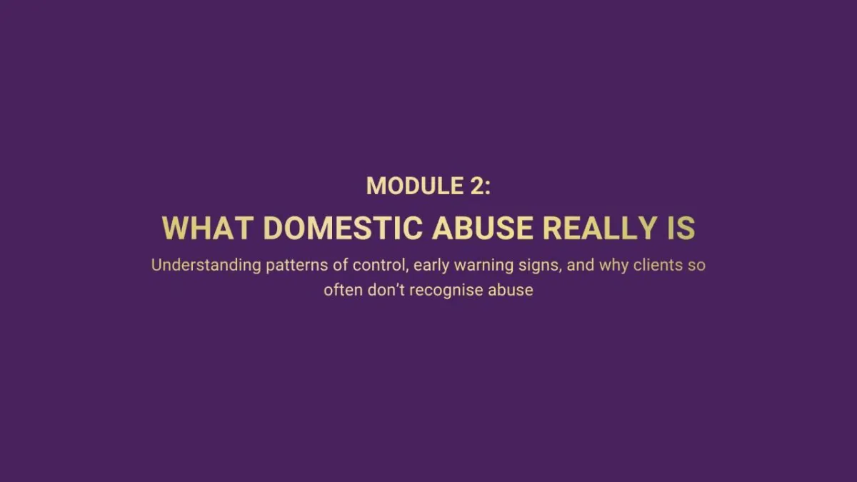 This module reframes domestic abuse as a pattern of control, not isolated incidents.