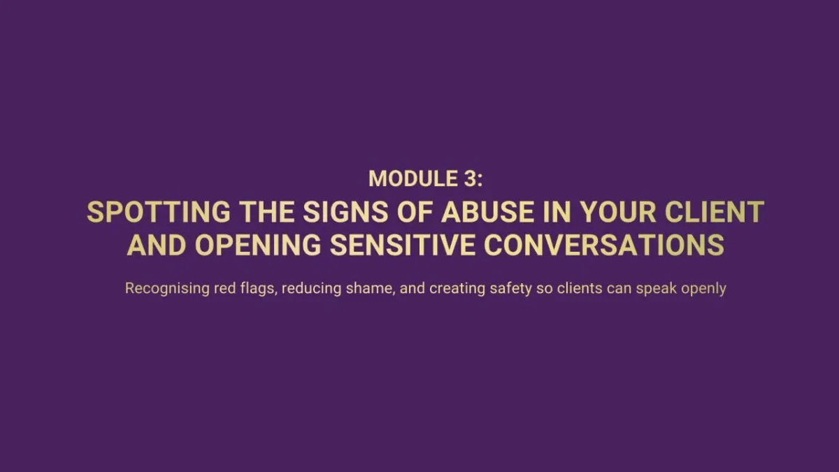You’ll recognise abusive dynamics even when clients cannot yet name them.