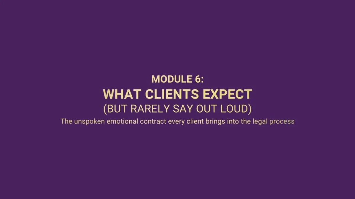This module explores the unspoken emotional expectations clients bring into professional relationships.